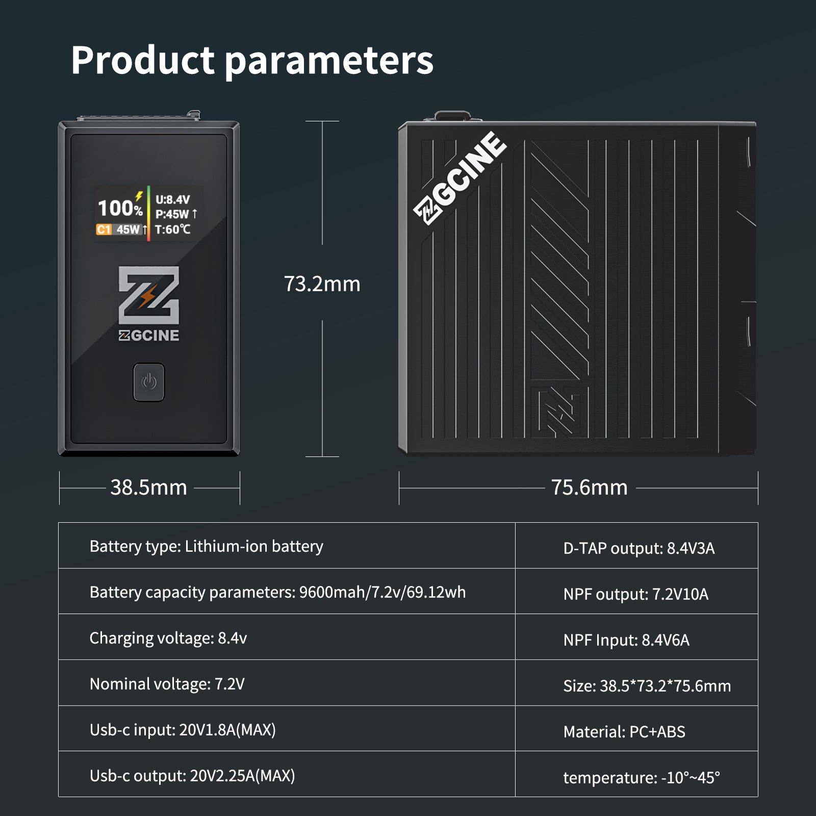 More-Port Smart NPF Battery: Independent circuit design,features a standard NP-F port that fits equipment using NP-F batteries. USB-C PD input/output (36W) and D-Tap Regulated output (8.4V3A).