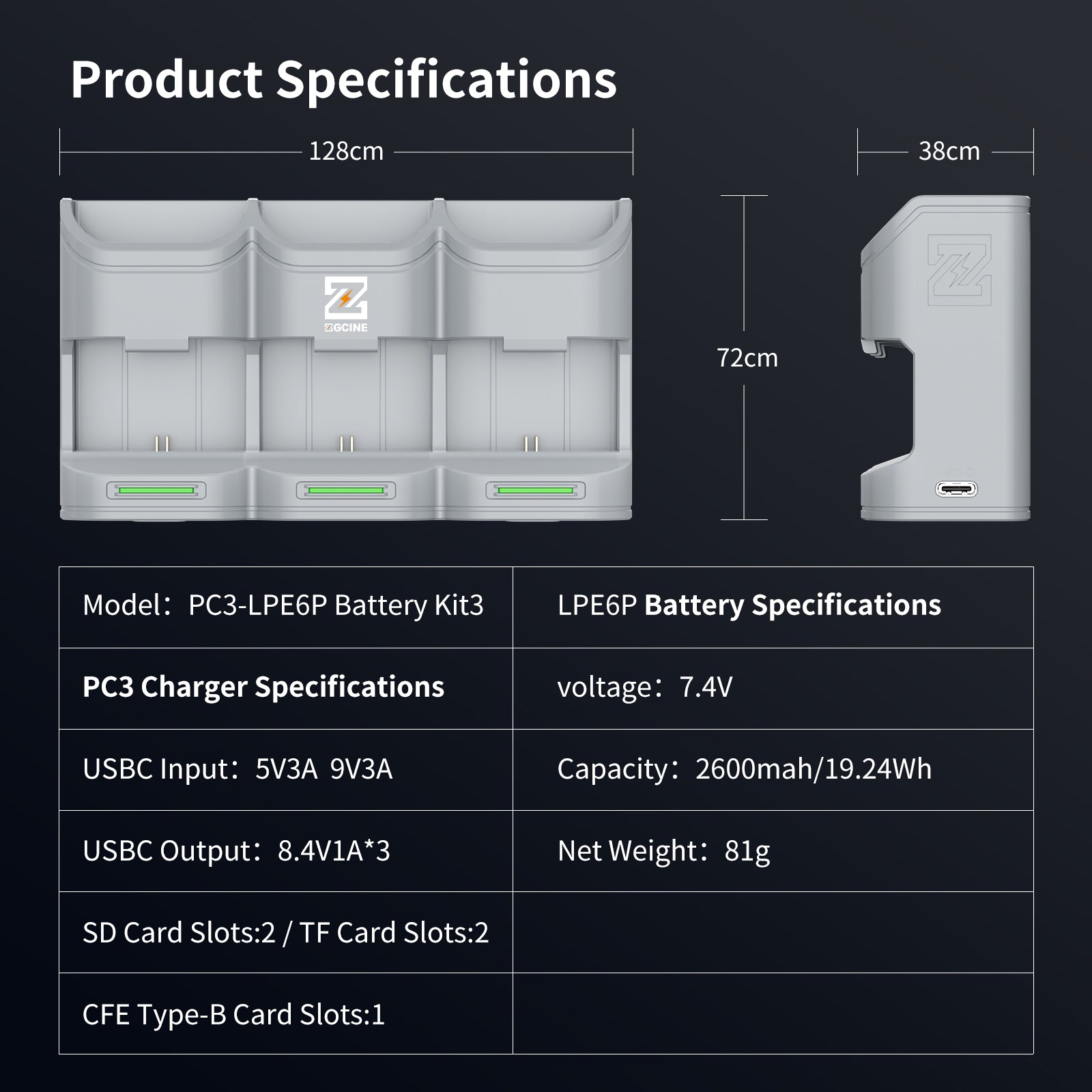PC3-LPE6 Travel Charging Case for Canon LPE6/NH/E6P Battery(Grey)