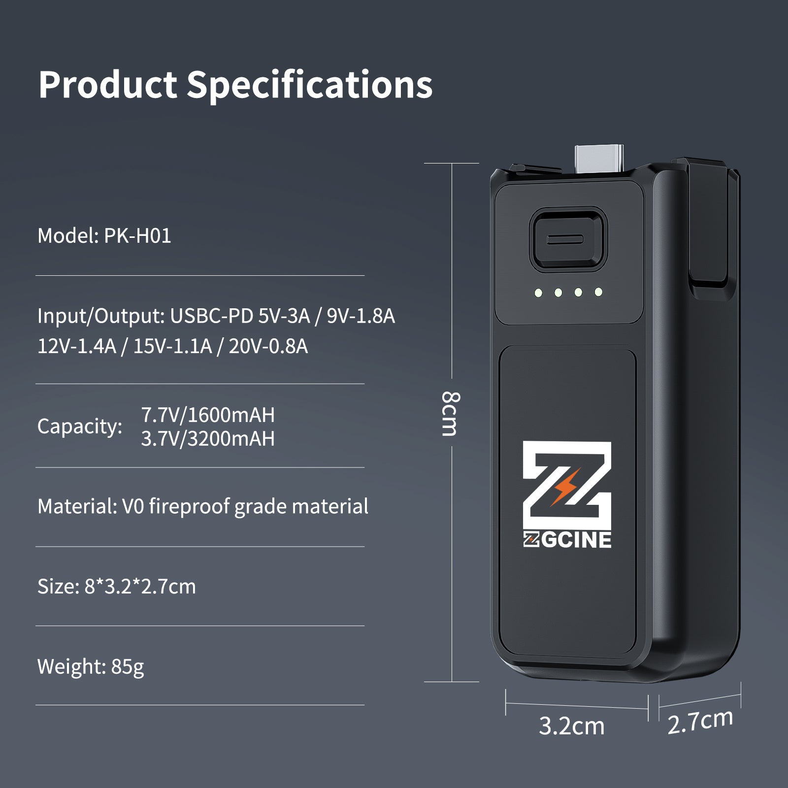 Powered by a 7.7V/1600mAh high-voltage battery, it can fully charge the Pocket3 1.0 times.