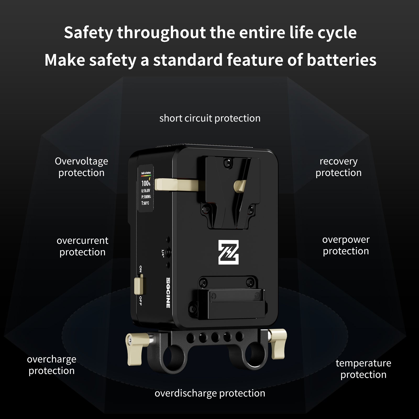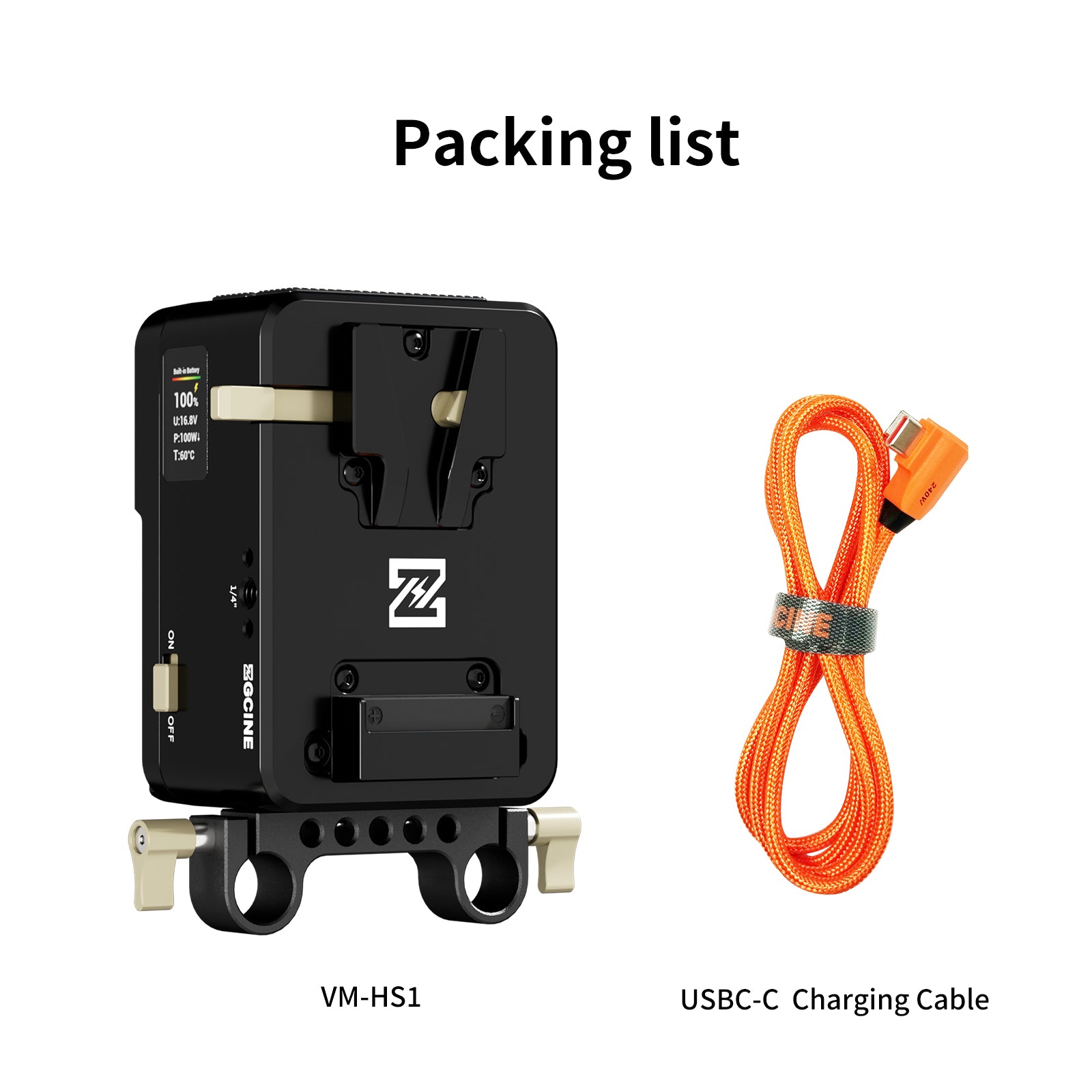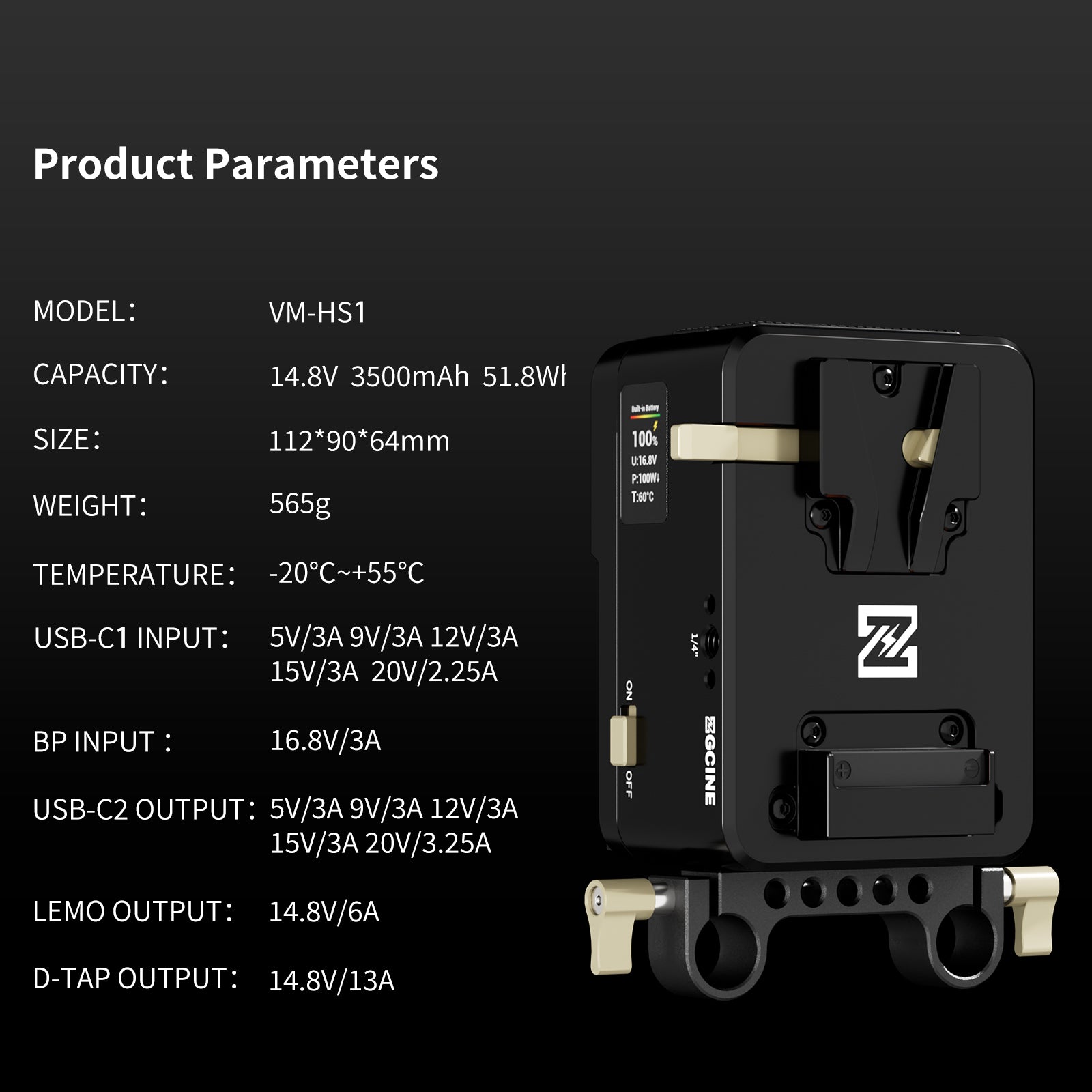 ZGCINE VM-HS1 Internal battery hot-swap V-mount battery plate with multi-port output and countdown reminder function for RED/Arri and other Cameras that are turned on for a long time (Black)