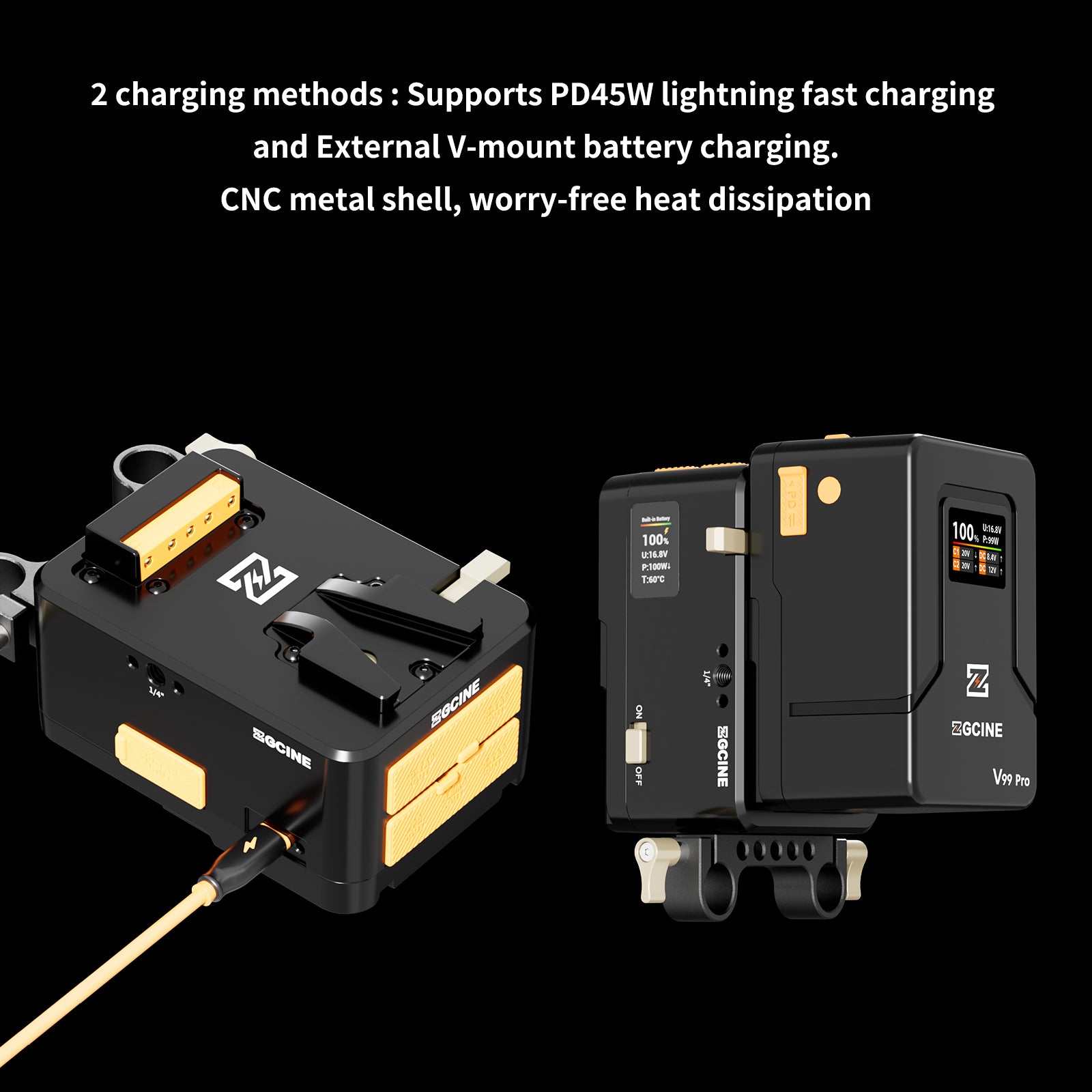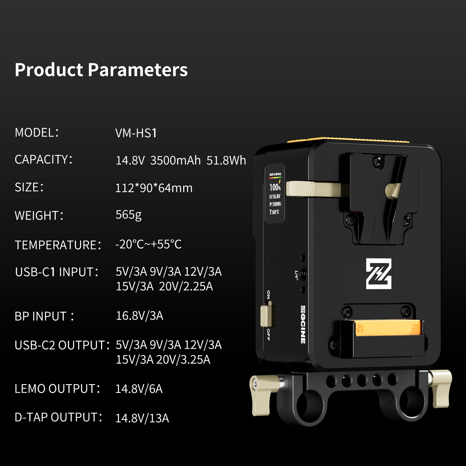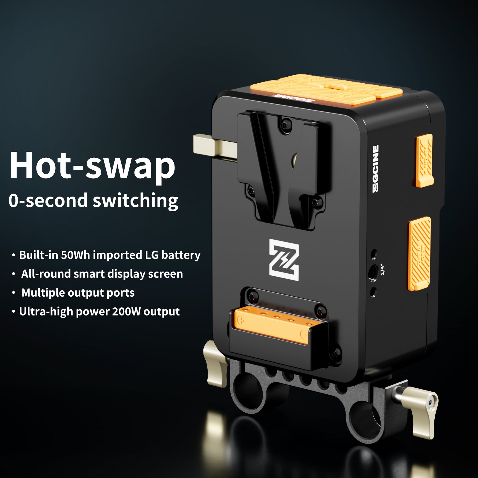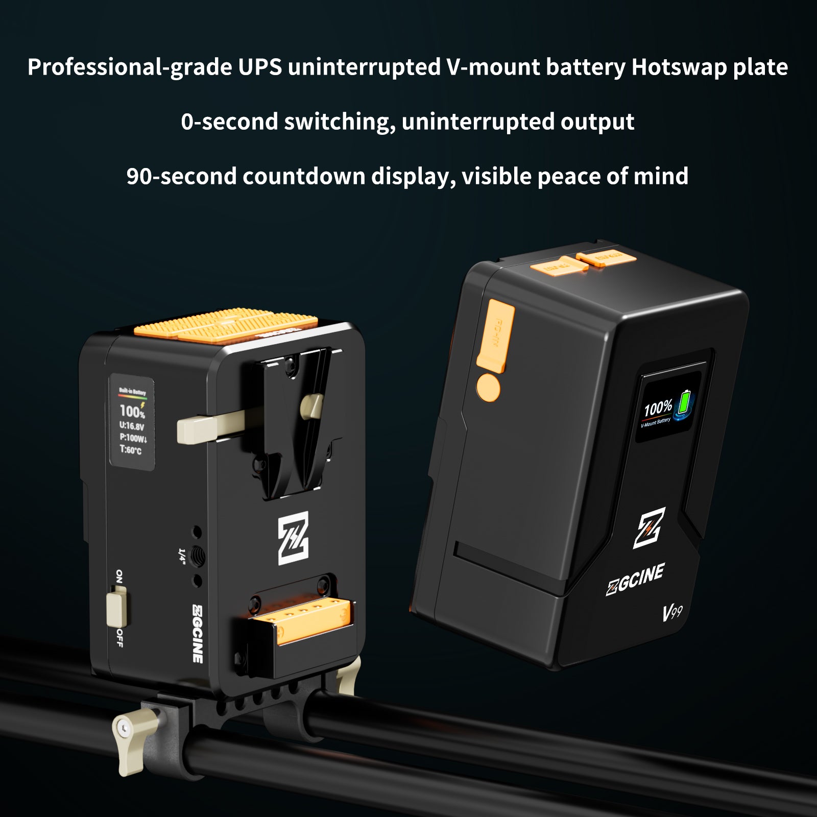 ZGCINE VM-HS1 Internal battery hot-swap V-mount battery plate with multi-port output and countdown reminder function for RED/Arri and other Cameras that are turned on for a long time (orange)