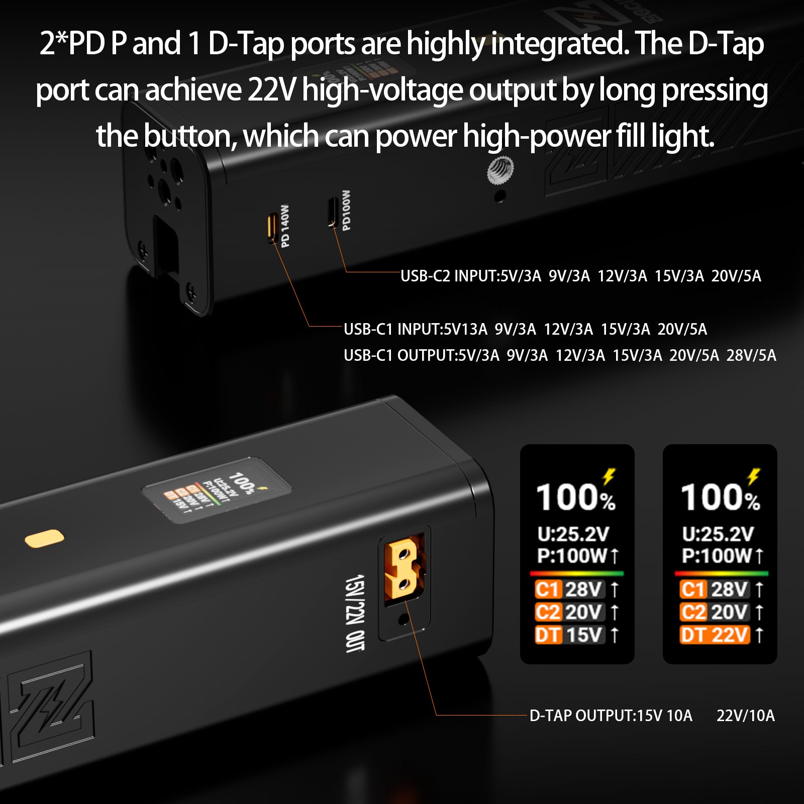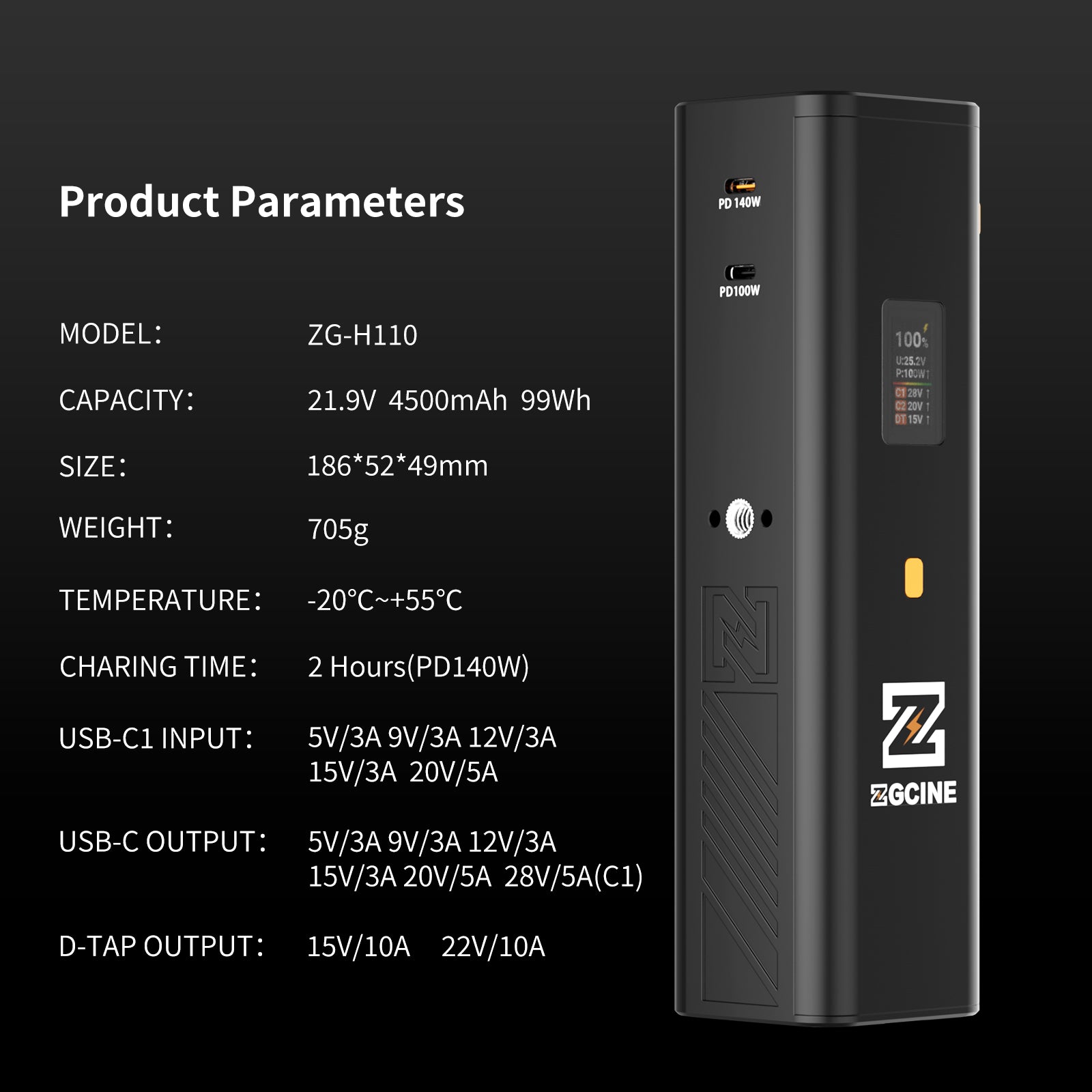ZG-H110 Battery Grip Support USBC PD3.1 140W Input/Output With OLED Display