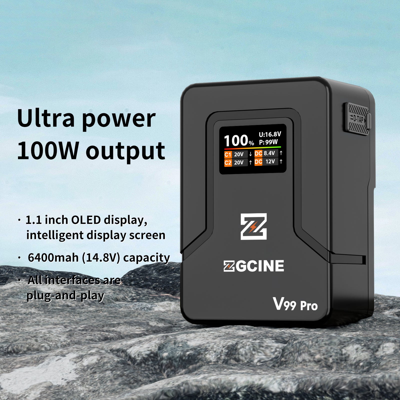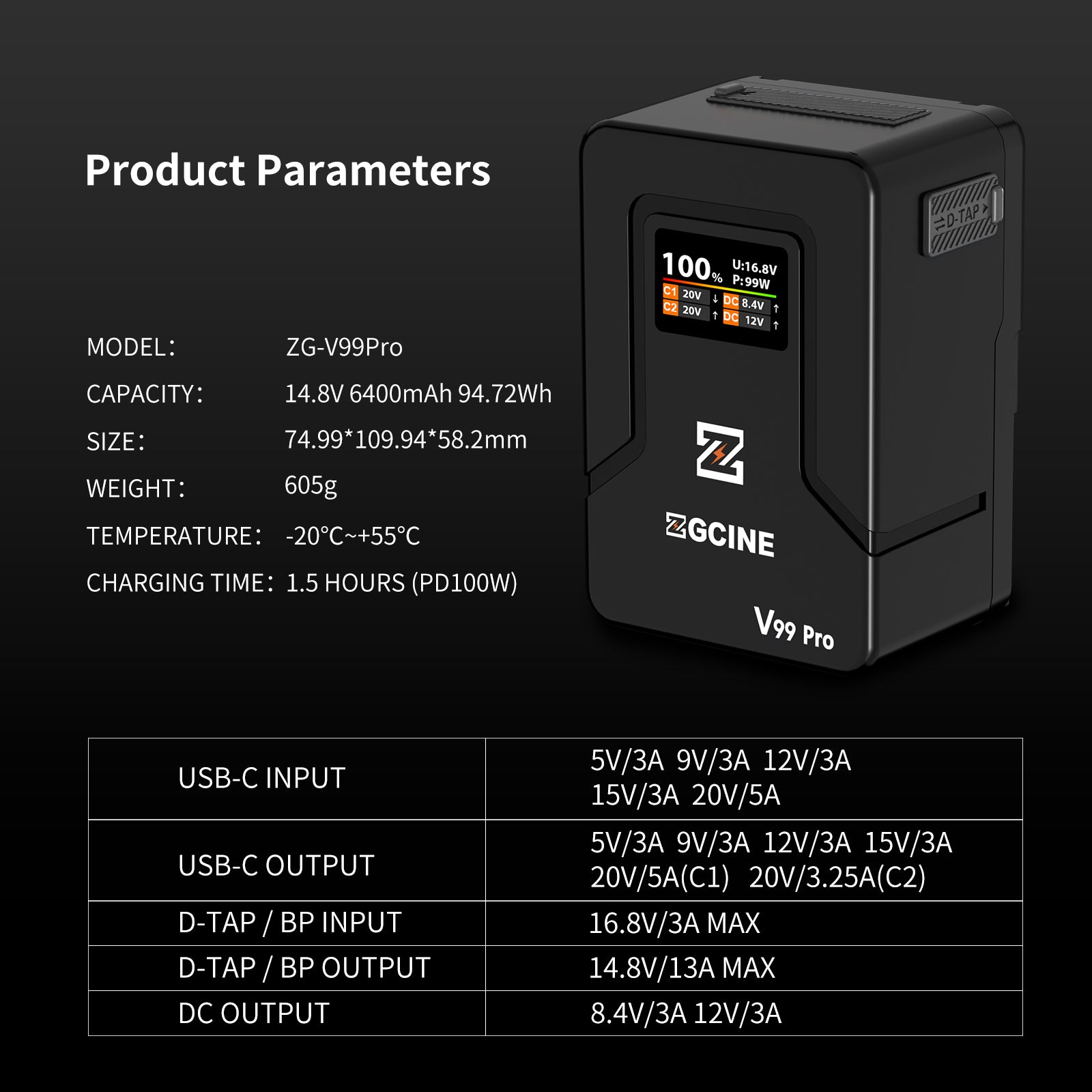 ZG-V99Pro V-Mount Battery Upgraded with PD100W faster charging speed, more ports and real-time smart display function (black)