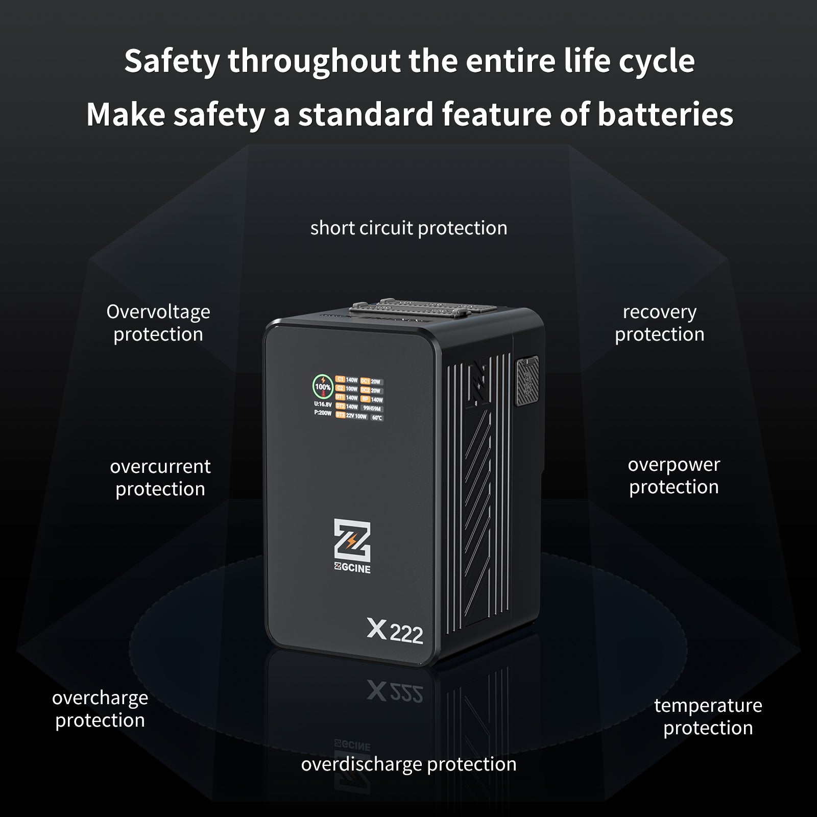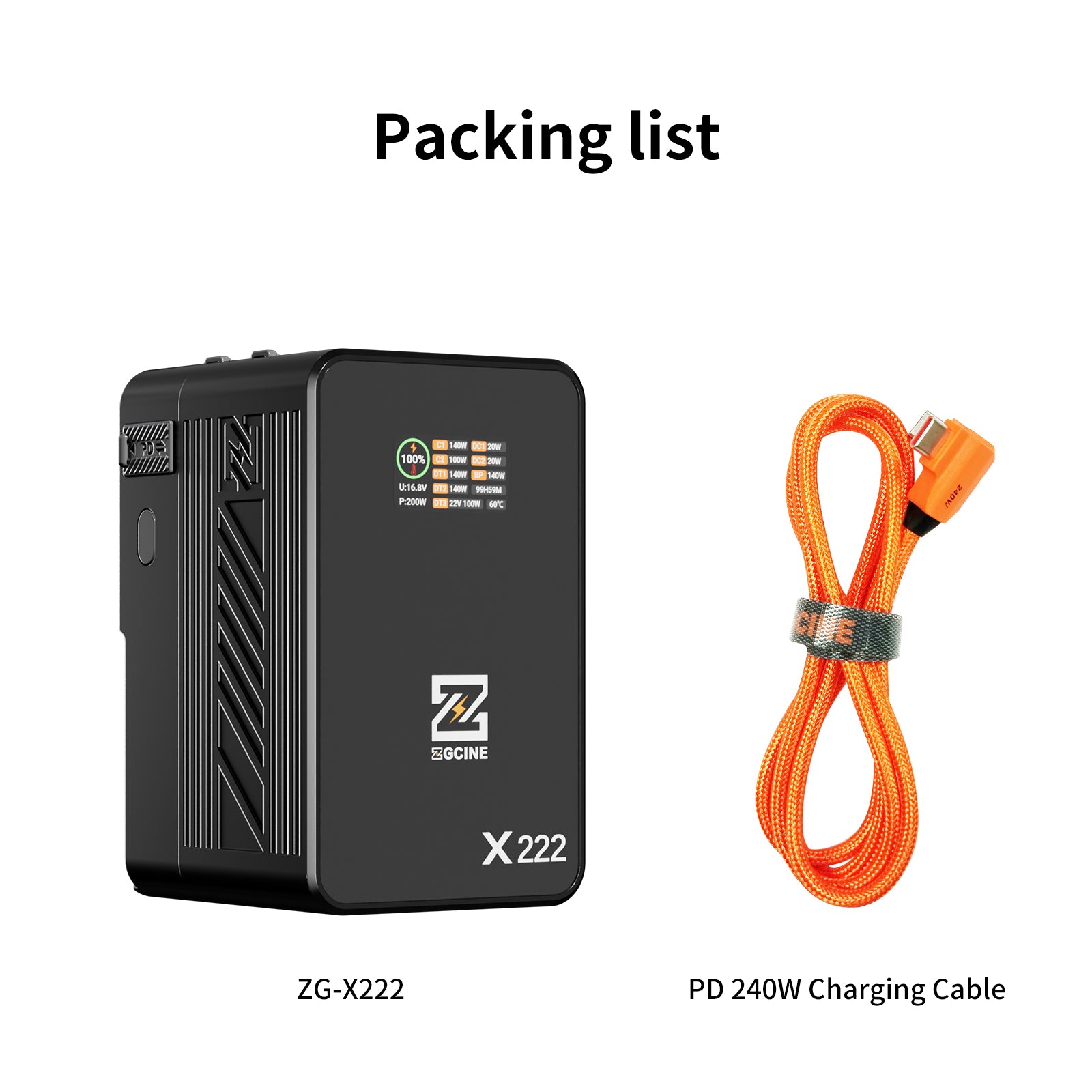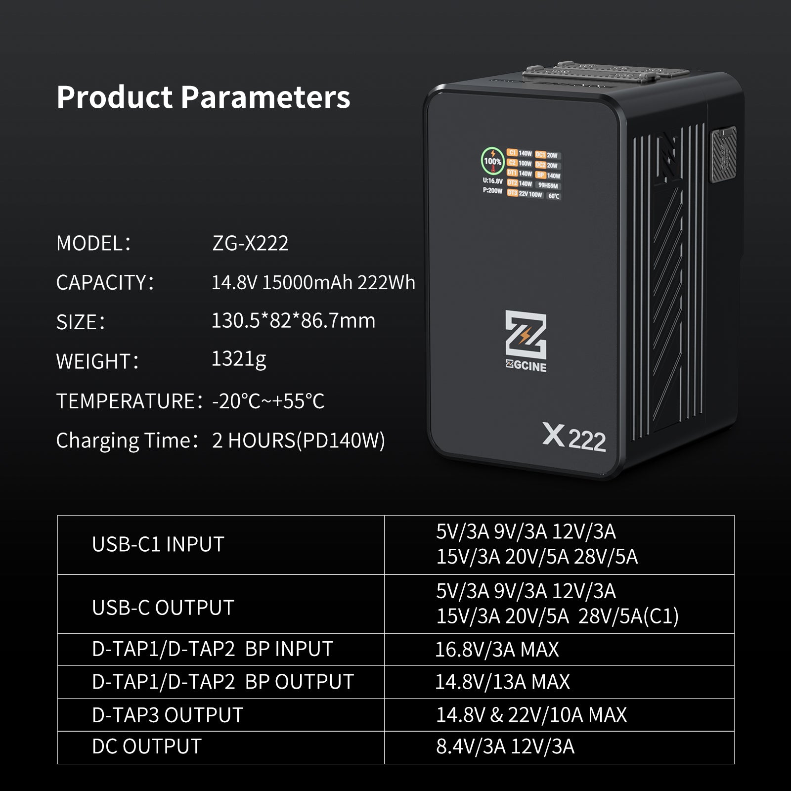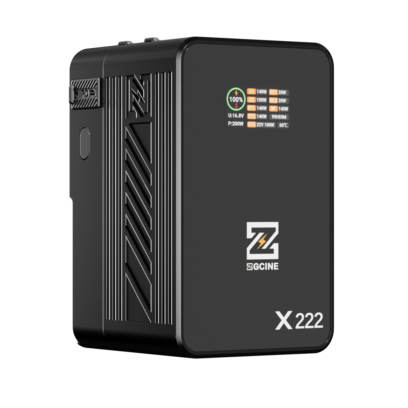 ZG-X222 V-Mount Battery 222Wh, PD3.1 140W Input/Output, with Dual USB-C, 3-D-TAP, Dual DC Port, 1.4in Digital Display(black)