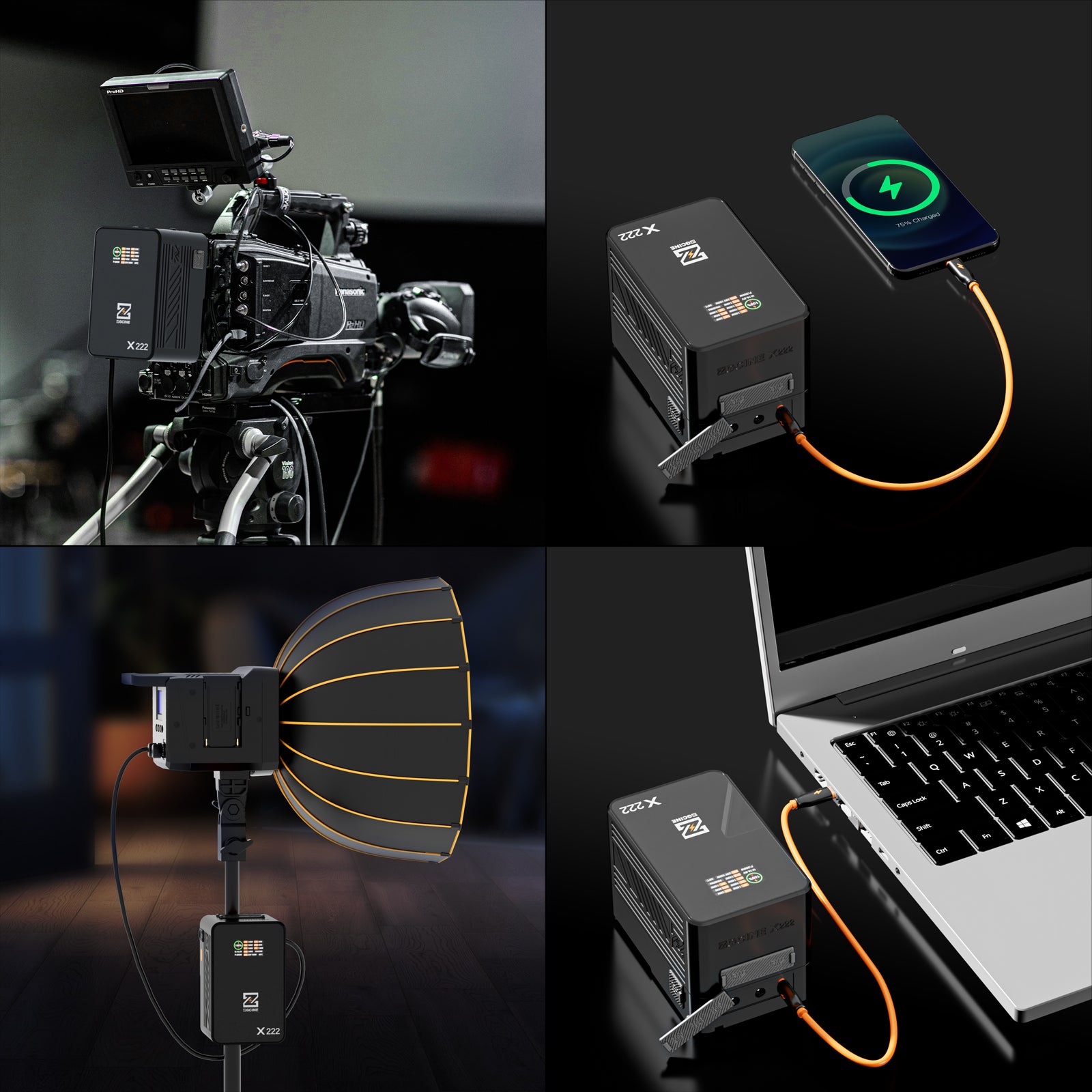 Widely compatible: With Various types of output ports, the ZG-X222 V-mount battery works well for your Video Cameras, Camera Monitor, LED Video Light, Smartphones, Computers and other photography devices.