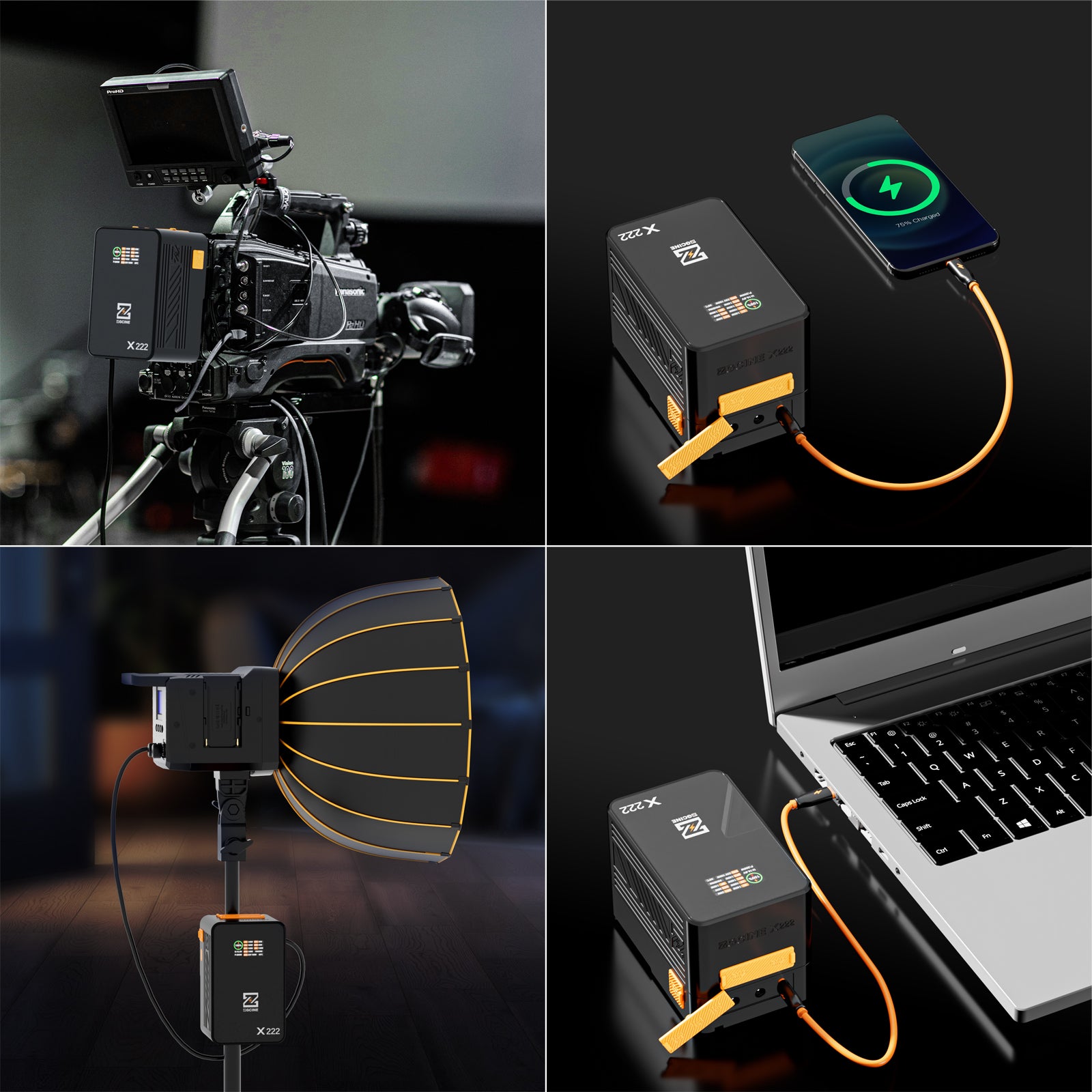 Widely compatible: With Various types of output ports, the ZG-X222 V-mount battery works well for your Video Cameras, Camera Monitor, LED Video Light, Smartphones, Computers and other photography devices.