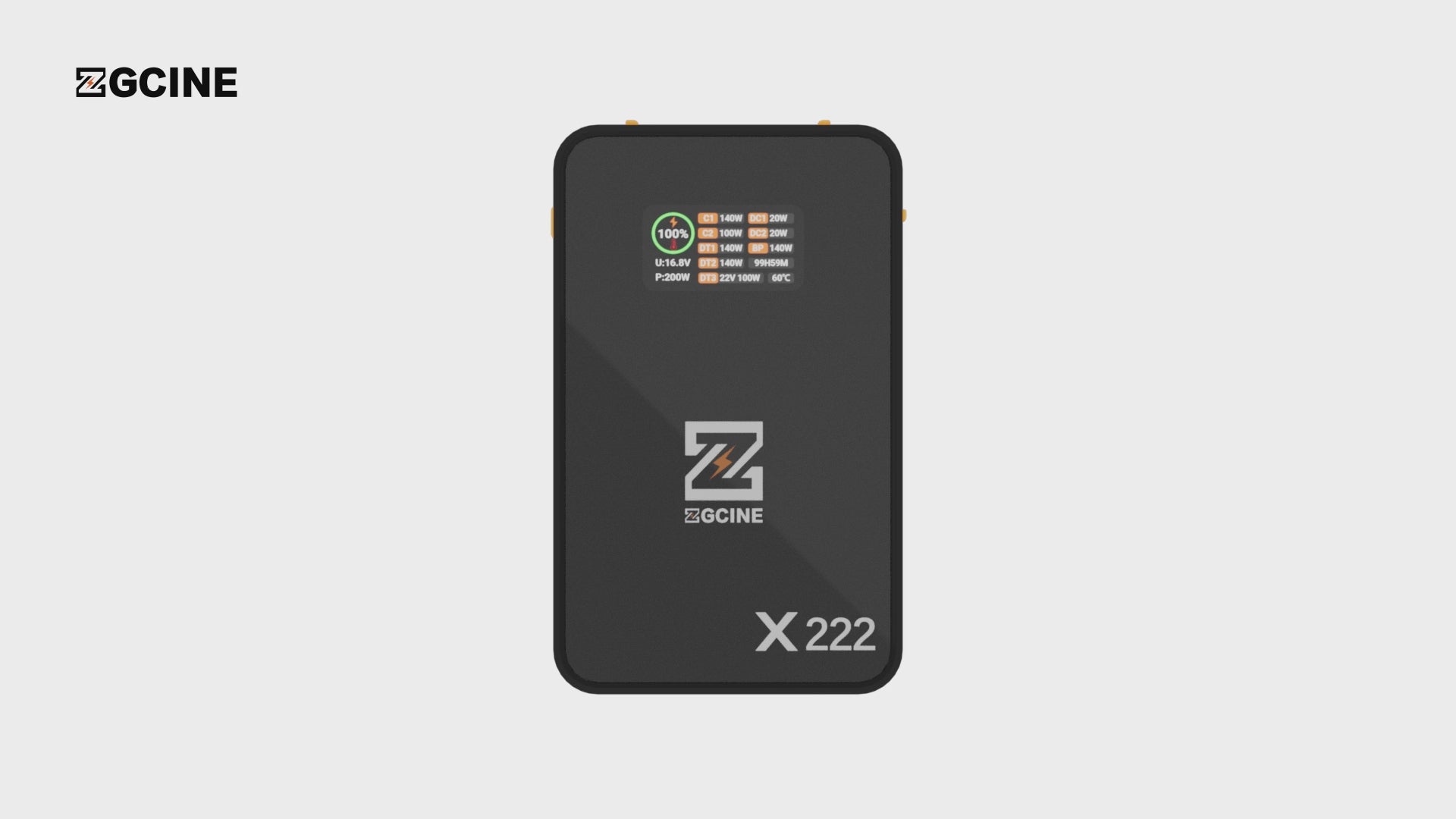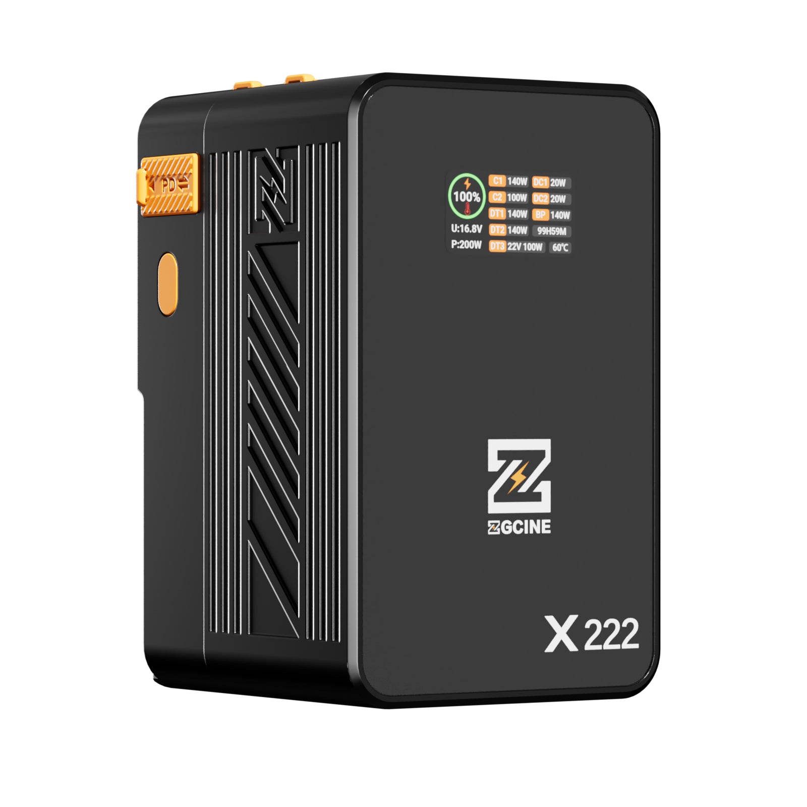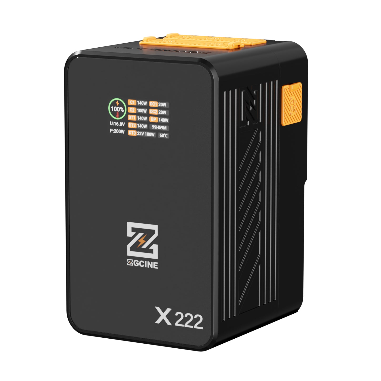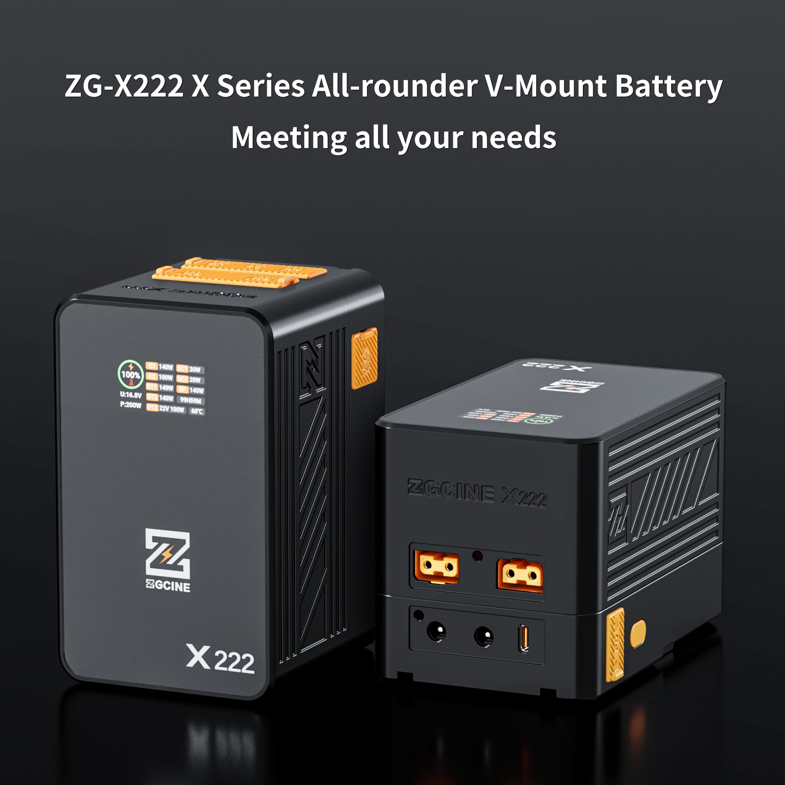 ZG-X222 V-Mount Battery 222Wh, PD3.1 140W Input/Output, with Dual USB-C, 3-D-TAP, Dual DC Port, 1.4in Digital Display(orange)