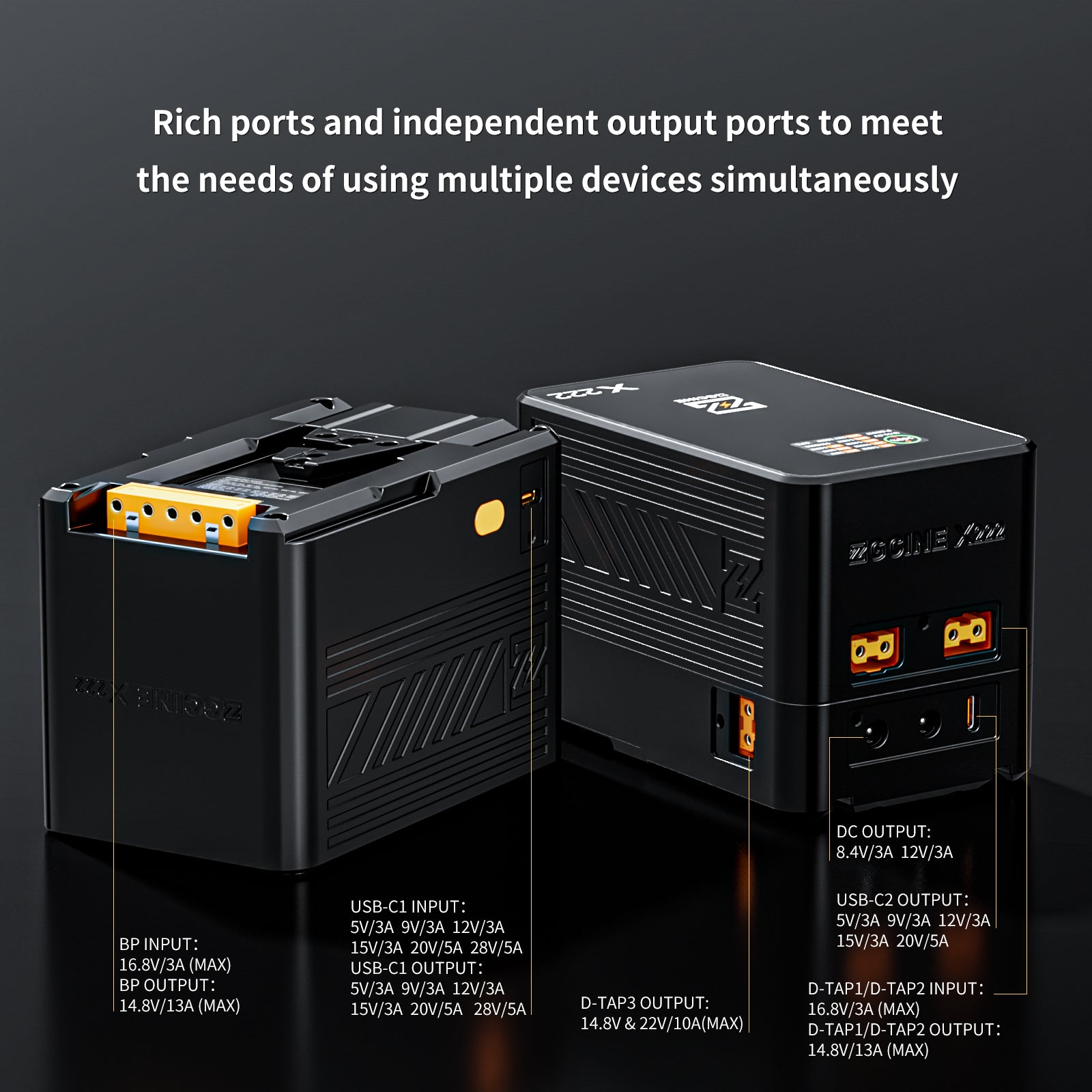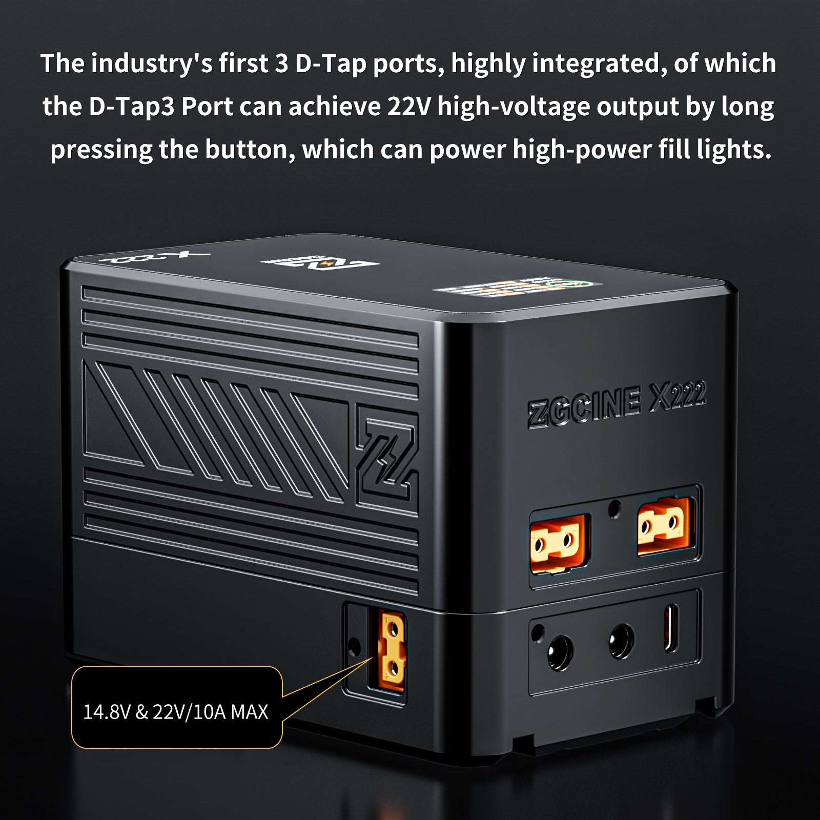 Industry Firsts:The industry's first 3 D-Tap ports, highly integrated, of which the D-Tap3 Port can achieve 22V high-voltage output by long pressing the button, which can power high-power fill lights.