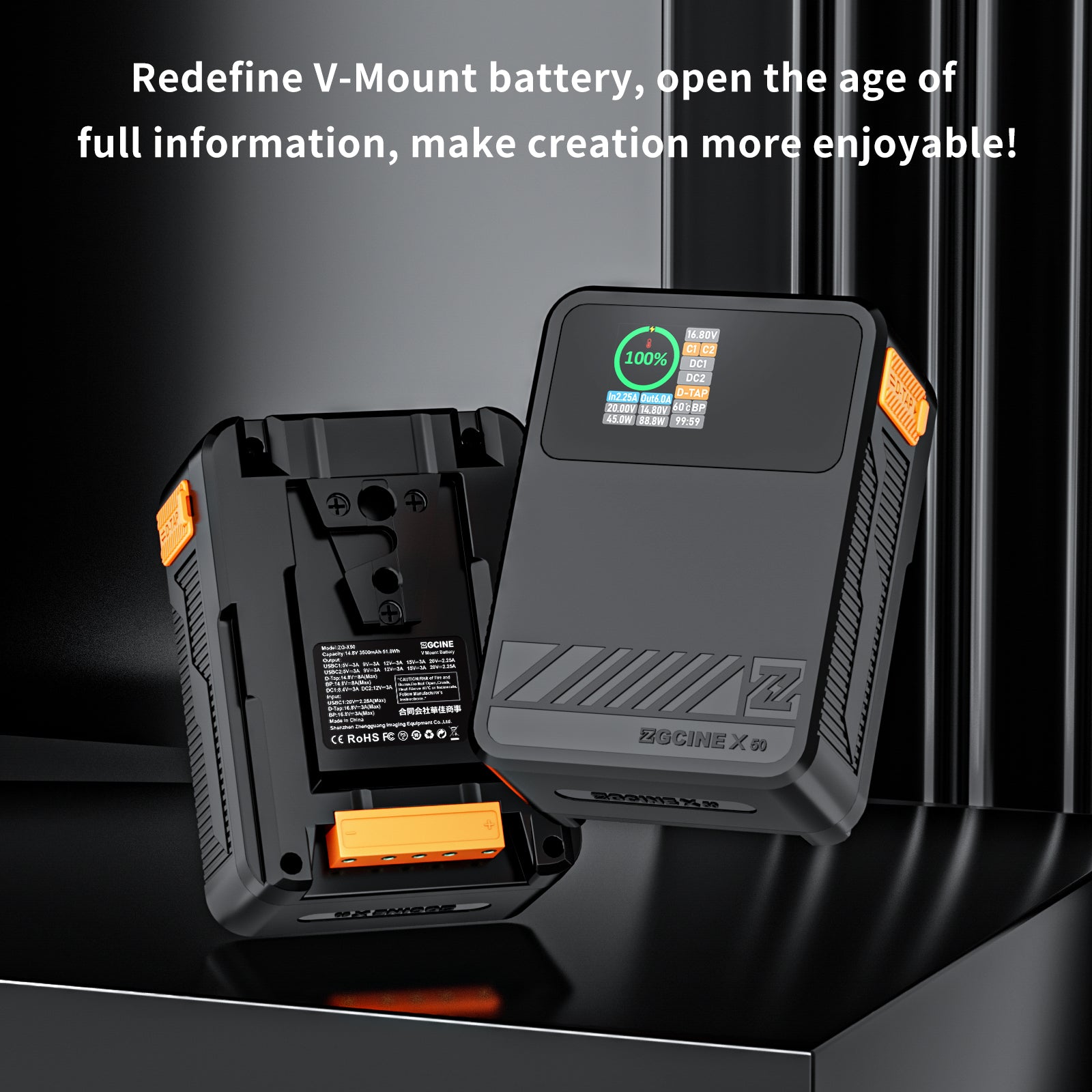 ZGCINE ZG-X50 V-Mount Battery,Support bidirectional 45W PD USB-C Fast Charger,52Wh/14.8V