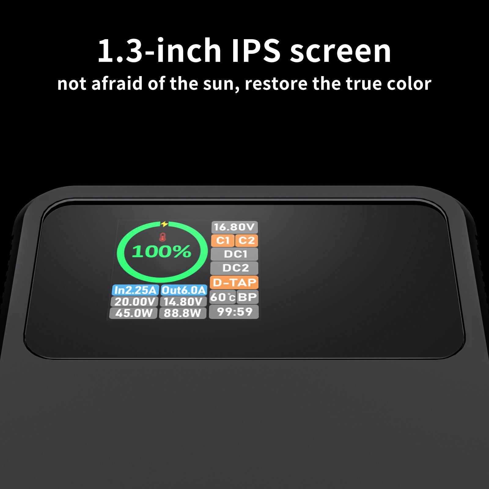 *1.3-inch IPS Screen: Full port identification, you can clearly see the current, voltage, total power, remaining time, temperature and other information of your device through the display.