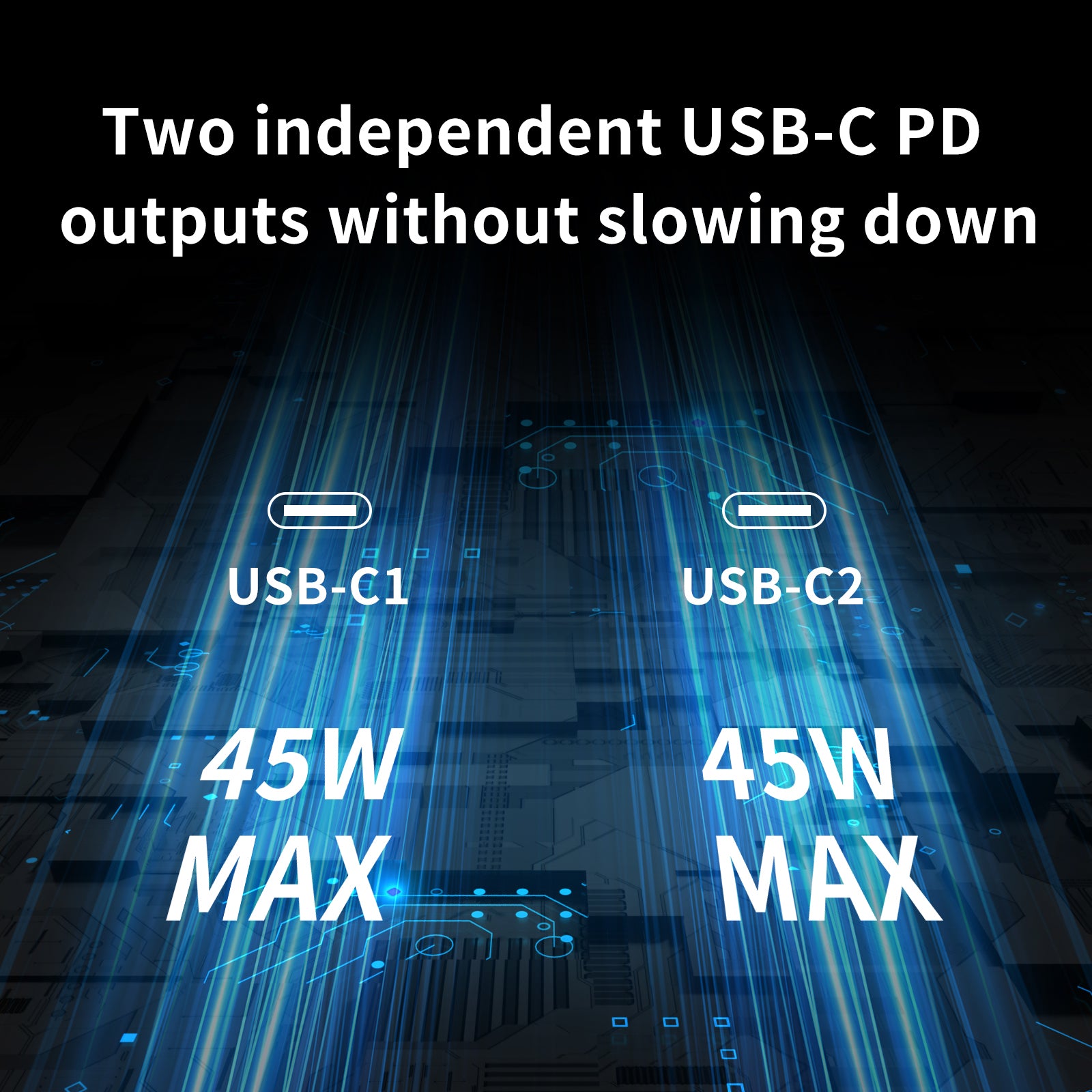 *New design circuit: plug and play, more stable,Dual independent USB-C PD outputs, no speed reduction when used at the same time Excellent appearance level, non-slip design, glass panel.