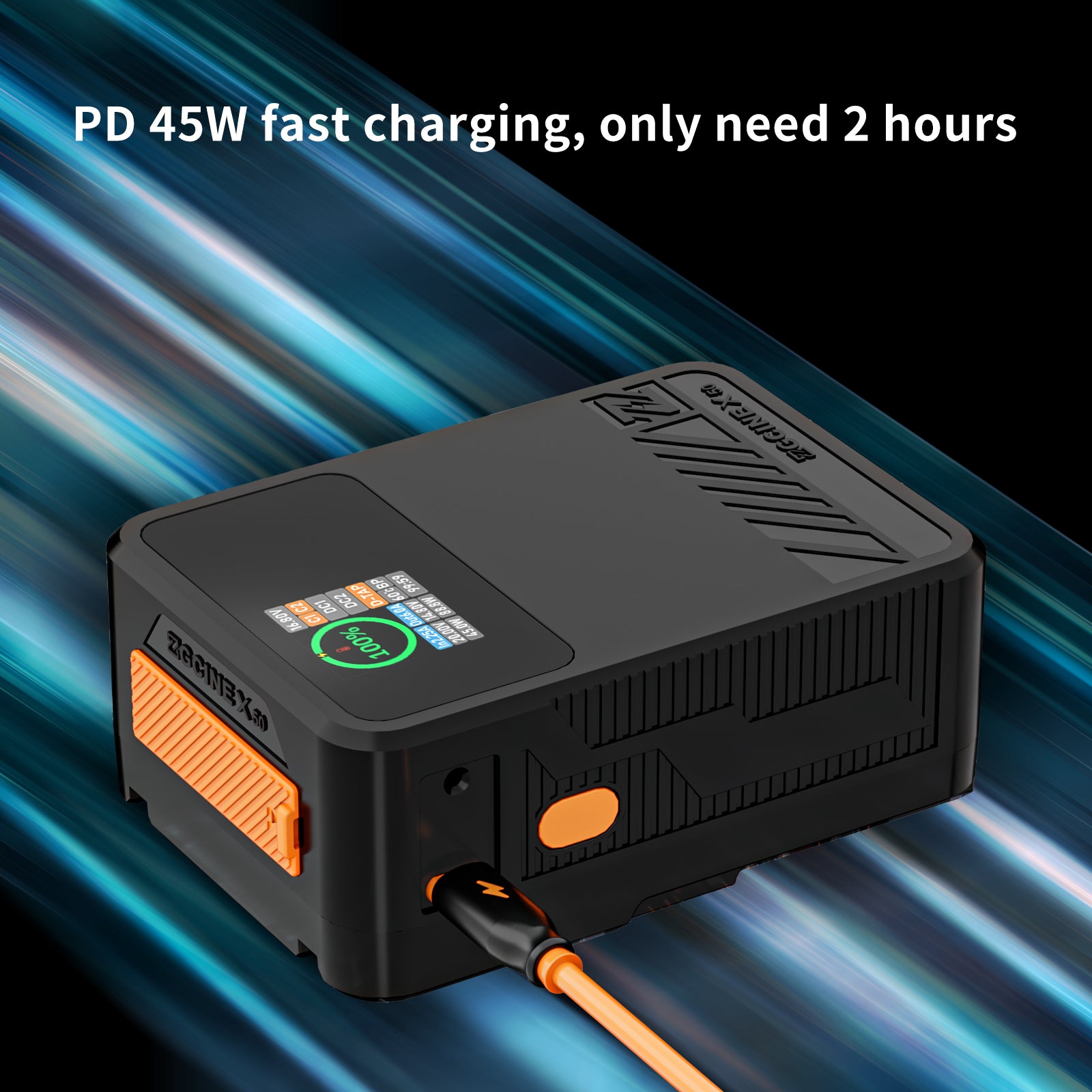 *PD Fast Charging: With USB-C PD 20V input, the V mount battery can be fully charged in 1.5 hours with a 45W charger, which can save you a lot of times.