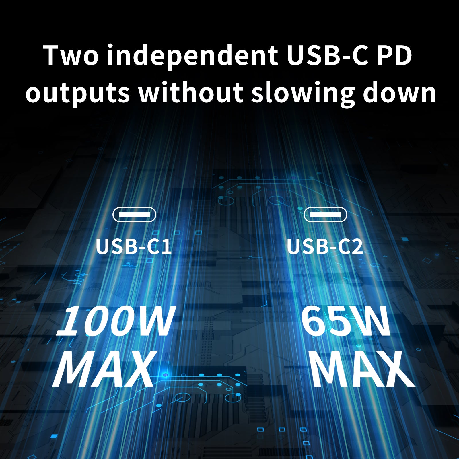 New design circuit: plug and play, more stable,Dual independent USB-C PD outputs, no speed reduction when used at the same time Excellent appearance level, non-slip design, glass panel.