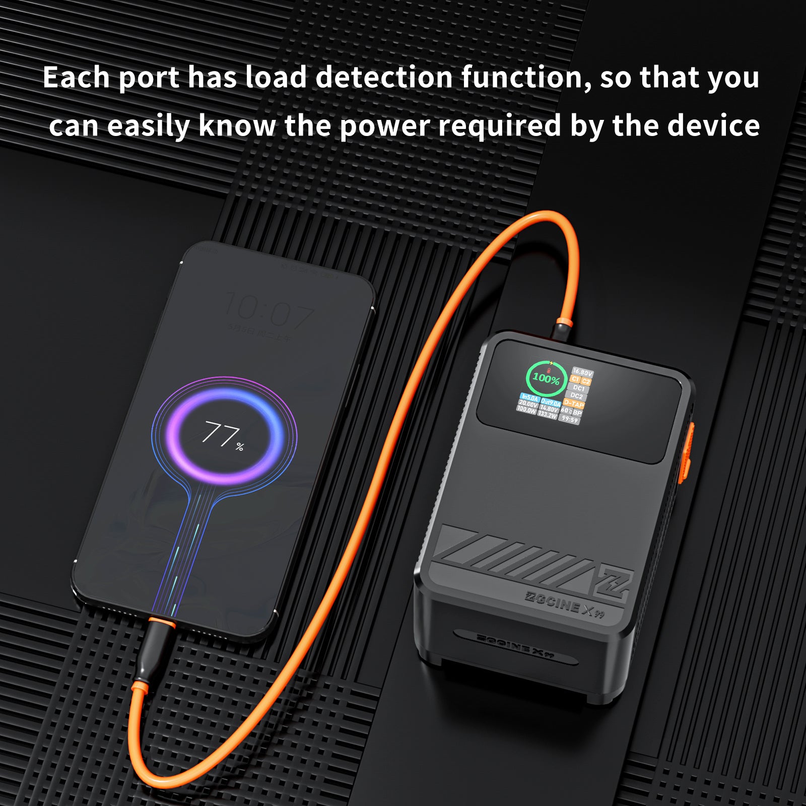 The ZGCINE X99 V-Mount battery is the world's first battery with real-time detection capabilities for any port (including D-Tap and BP ports), equipped with a 1.3 inch IPS screen and full port recognition. Through the display screen, the current, voltage, total power, remaining time, temperature and other information of the battery in use can be clearly seen.You can use the battery to read the power of any device and become a creative tool for creators.